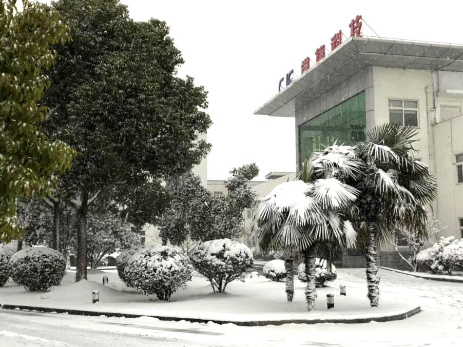今年的雪來勢兇猛,全城開啟“冰雪奇緣”模式。廠區道路、屋面、車棚、樹木被積雪覆蓋,給全體員工的出行帶來不便。但“CJE 常捷科技”在銀裝素裹下更顯熠熠生輝。